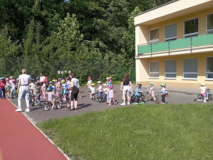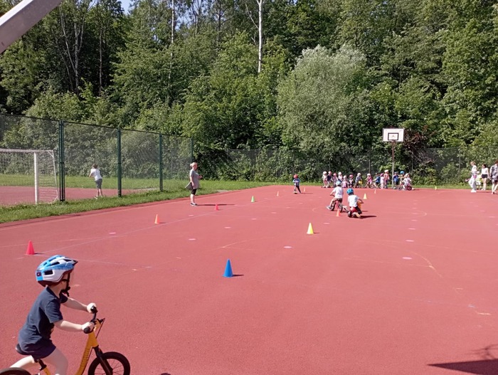 Děti si z domova přinesly svá odrážedla, koloběžky a helmy a s nadšením se vydaly na společné sportovní dopoledne. Po důkladné kontrole výstroje a zopakování pravidel bezpečnosti se celá školka přesunula na hřiště u základní školy. Tam už na děti čekala připravená dráha plná zábavných úkolů. Největší výzvou byl slalom mezi kužely, jízda po rovné čáře a překonávání různých malých překážek. Děti si vyzkoušely nejen svou obratnost a rovnováhu, ale také schopnost dodržovat pravidla a ohleduplnost vůči kamarádům. Všechny děti si dopoledne náramně užily.