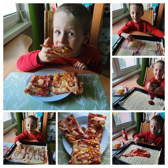 Jelikož se dětem ve třídě pečení pizzy moc líbilo a tvrdily, že by si ji chtěly upéct i doma, navrhly paní učitelky z Ježků dobrovolný domácí úkol. Jak to dopadlo, si můžete prohlédnout na fotkách. Recept na pizzu naleznete ve fotogalerii.