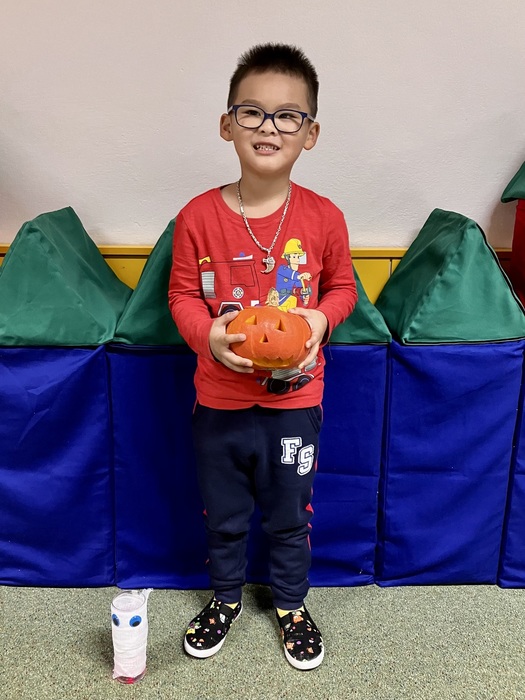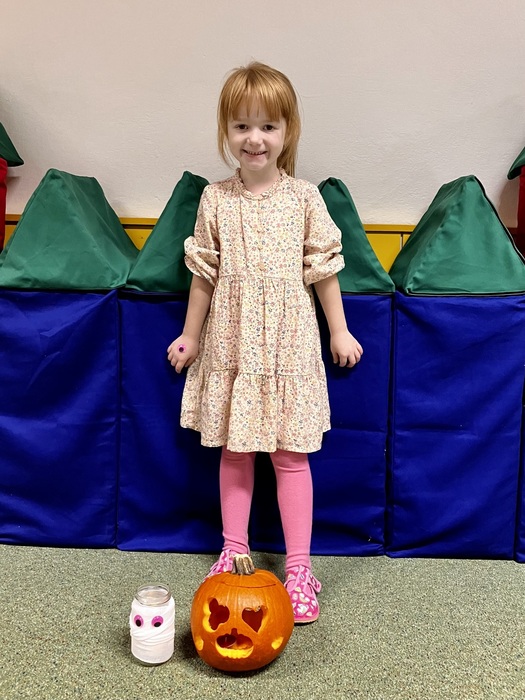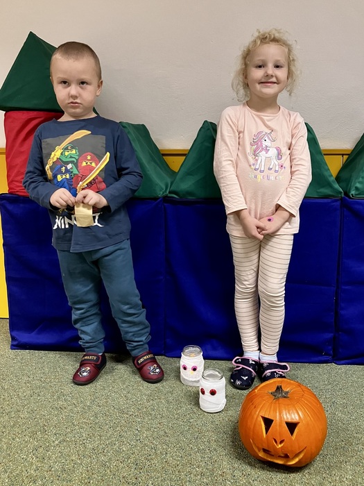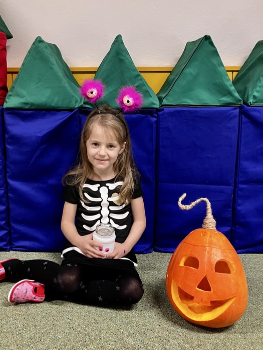 Ze skleniček jsme si vyrobili „Svítící bubáčky“ a vydlabali dýně.