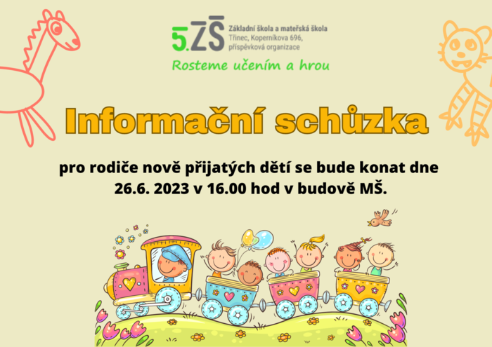 Úvod > Mateřská škola > Aktuality MŠ > Informační schůzka pro rodiče dětí přijatých od školního roku 2023/2024