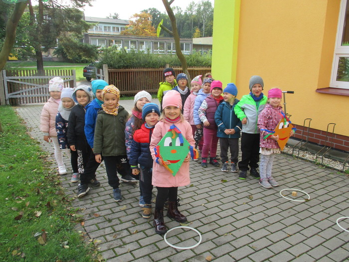V úterý 24.10. si všechny děti užily tematickou podzimní vycházku. Od rána společně na třídách tvořily děti papírové draky. Během řízené činnosti paní učitelky přečetly dětem pohádku o drakovi a poté děti odpovídaly na otázky. Nakonec na děti čekaly zábavné úkoly na zahradě MŠ a zakončení proběhlo v lesoparku, kde měly děti za úkol společně postavit draka z přírodnin. A příště na děti čeká zimní tematická procházka.