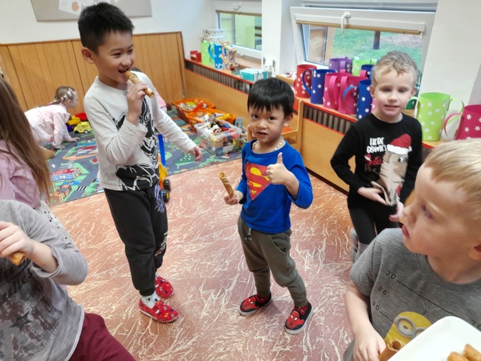 Celou budovou mateřské školy voněla skořice a perníkové koření. Děti ze třídy ježečků pekly vánoční trubičky a děti ze třídy soviček pekly medové perníčky.