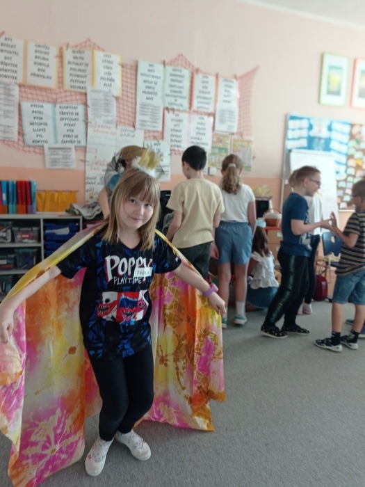 Ve čtvrtek 1. 6. zažily děti na naší škole netradiční den dětí. Pro děti z prvního i z druhého stupně byly připraveny různorodé workshopy. Děti z druhého stupně si tak mohly vyzkoušet hudební workshop, malbu na tělo, setkání s knihou, tanec, tvorbu nepečených dortů, vyrábění šperků, lukostřelbu, základy MMA, točení a úpravu videí, kuchařský i šachový workshop a deskové hry. Pro vytrvalce byla připravena cyklo vyjížďka na Kozinec a Ostrý a tvorba náročných konstrukcí z Merkuru. Děti z prvního stupně tvořily skupinky napříč ročníky. Skupiny potom společně absolvovaly šest z jedenácti různých workshopů. Vyzkoušet si mohli únikovou hru, vyrábění náramků přátelství, pantomimu, break dance, pohybové aktivity, kvíz "Co na to Češi", zábavné pokusy, Marshmallow challenge, stavby z kostek, kreativní vyrábění a muzicírování. Do dne dětí se zapojila opravdu celá škola. Všem učitelům, asistentům a pomocníkům moc děkujeme a věříme, že si děti svůj den opravdu užily.