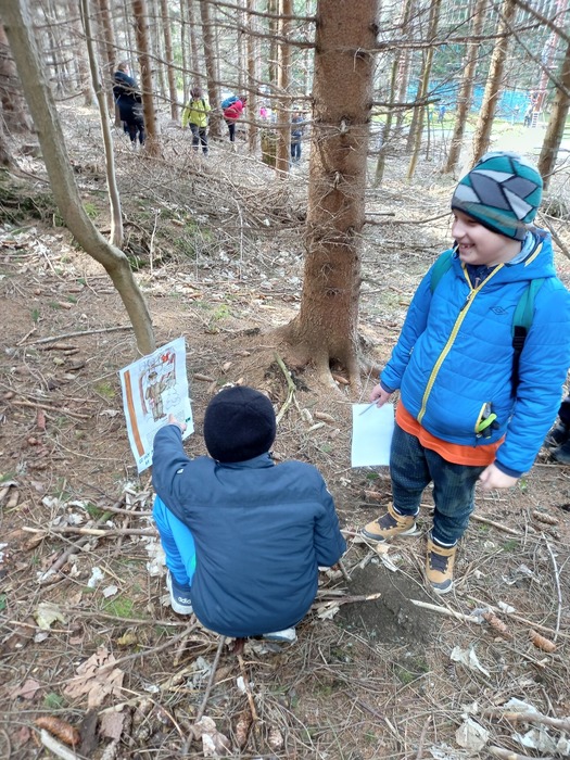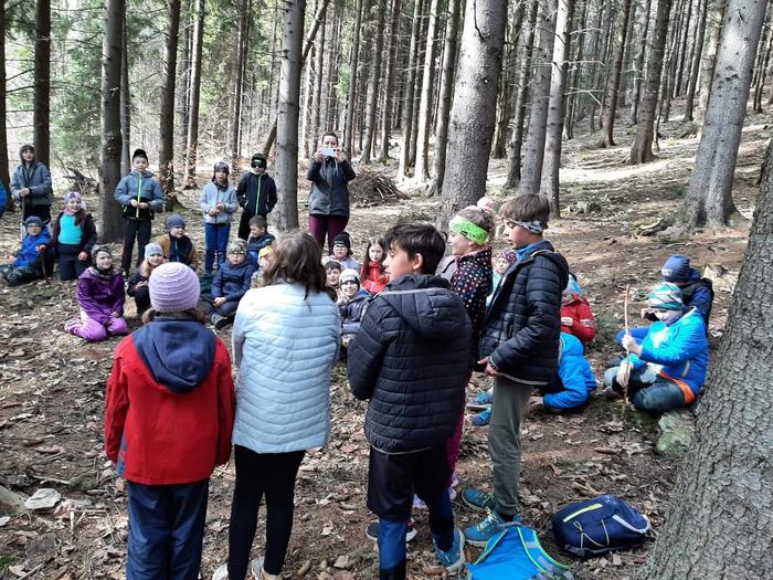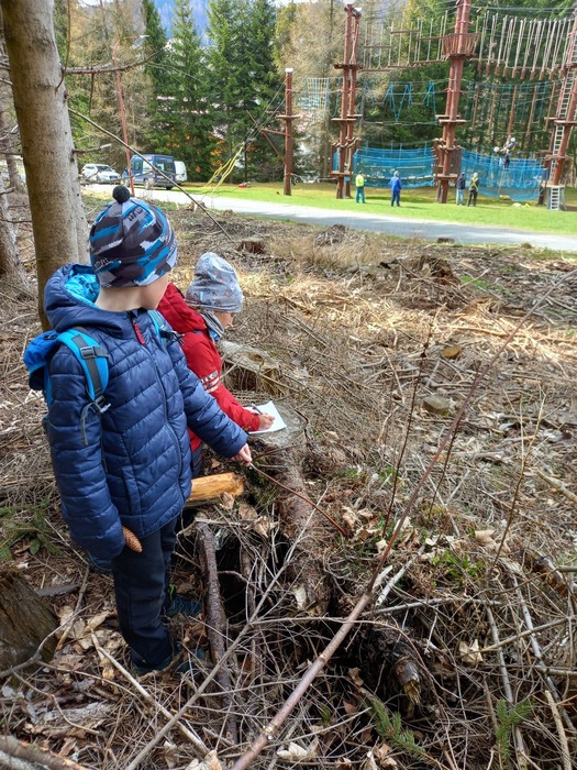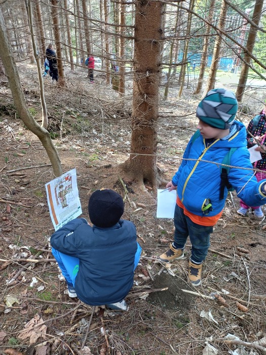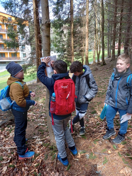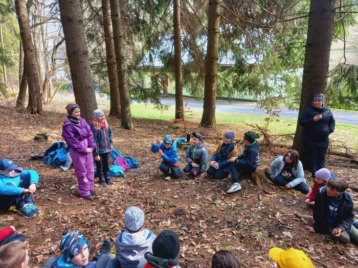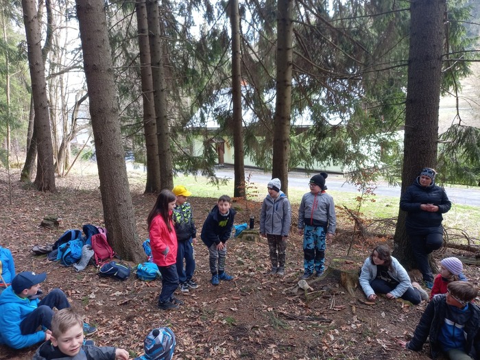 Ve středu na nás začalo malinko vykukovat sluníčko a tak jsme hned po ranním výukovém bloku vyrazili ven. V nedalekém lese na děti čekalo dvanáct stanovišť, kde se děti dozvěděly mnoho užitečných informací o lese a lesním hospodářství. Děti měly za úkol odpovídat na otázky, které se vždy týkaly textu jednotlivých stanovišť. Po této odborné práci čekala na děti výzva kreativní. Vytvářely lesní víly z přírodních materiálů. Po odpoledním klidu jsme opět vyrazili do přírody. Děti vytvářely ve skupinách zábavný program pro ostatní, nutno říci, že byly velmi kreativní :-) Večerní program byl ve znamení hry Riskuj, která děti velmi zaujala.
