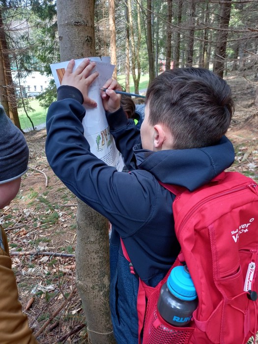 Ve středu na nás začalo malinko vykukovat sluníčko a tak jsme hned po ranním výukovém bloku vyrazili ven. V nedalekém lese na děti čekalo dvanáct stanovišť, kde se děti dozvěděly mnoho užitečných informací o lese a lesním hospodářství. Děti měly za úkol odpovídat na otázky, které se vždy týkaly textu jednotlivých stanovišť. Po této odborné práci čekala na děti výzva kreativní. Vytvářely lesní víly z přírodních materiálů. Po odpoledním klidu jsme opět vyrazili do přírody. Děti vytvářely ve skupinách zábavný program pro ostatní, nutno říci, že byly velmi kreativní :-) Večerní program byl ve znamení hry Riskuj, která děti velmi zaujala.