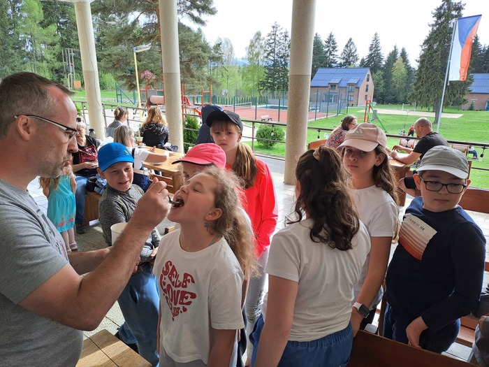 Dnešní den se nesl ve znamení zvířat a bylin. Hra na dravce a kořisti nás zcela pohltila. Zahráli jsme si zvířecí pexeso, skládali báseň o komárech. Ochutnali jsme bylinkové lektvary a učili se byliny rozeznávat. Zítra nás čeká výlet na Žiarskou chatu :-)