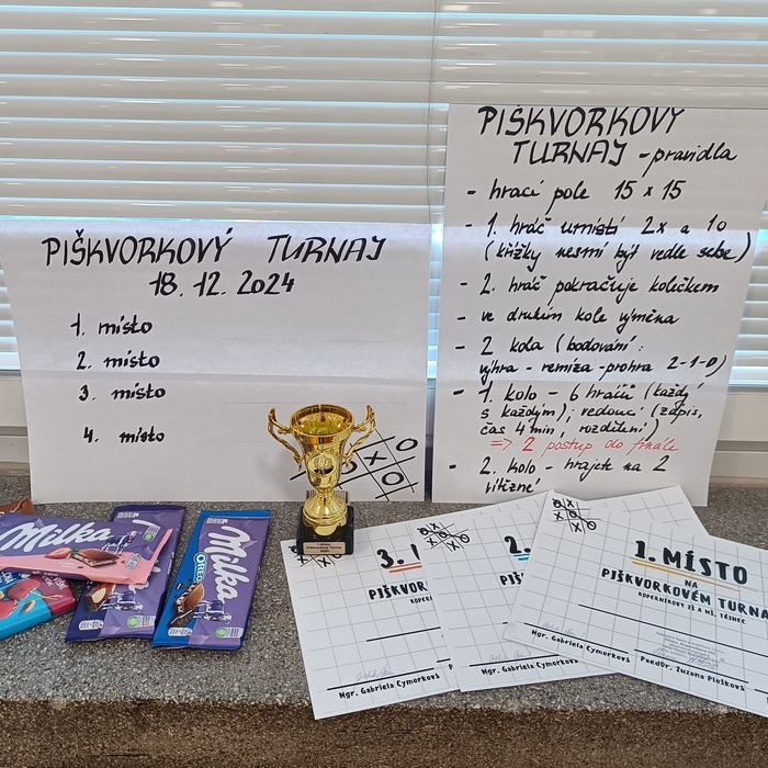 Ve středu 18.12. se konal již druhý ročník Vánočního piškvorkového turnaje. Zúčastnilo se 35 dětí napříč druhým stupněm.