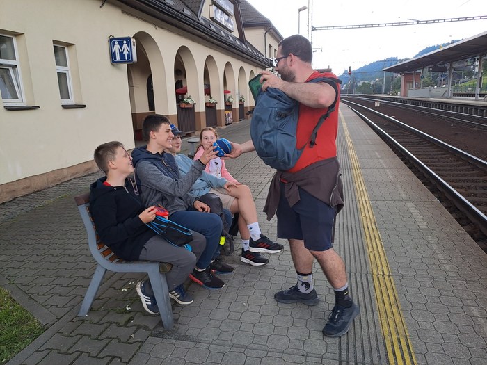 Přesto se nám podařilo na Skalku dorazit, aniž bychom zmokli a dokonce jsme z mokrého dříví rozdělali oheň a opekli si špekáčky. Při zpáteční cestě chvilku mírně mrholilo, ale opravdový déšť přišel až ve chvíli, kdy už jsme seděli ve vlaku do Třince. Celkem jsme ušli 12,5 kilometru a všechny děti, které s námi celý rok plnily výzvu, získaly drobnou sportovní odměnu.
