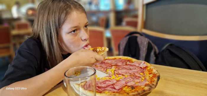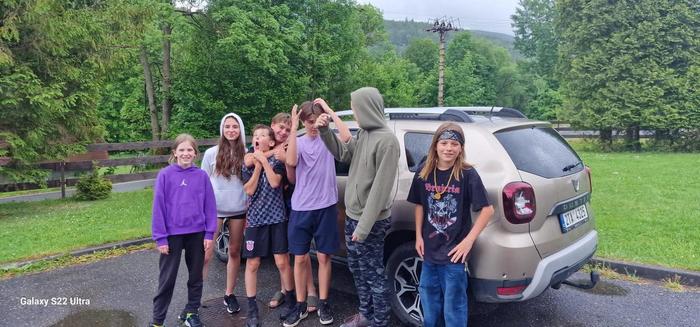 Uklidili jsme chatu, a protože nám nepřálo počasí, sedli jsme na autobus a v Třinci si dali pizzu.