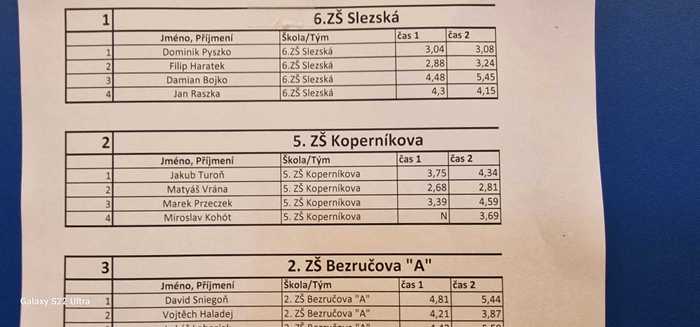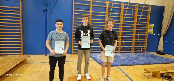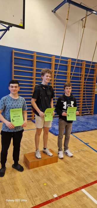 Cink cink. Chlapci ve šplhu letos vyhráli v konkurenci dalších 6 škol. Skvělé výkony pak v individuální disciplíně ve šplhu podtrhl Matyáš Vrána. Tým šplhal ve složení Matyáš Vrána, Miroslav Kohót, Marek Przeczek a Jakub Turoň. Díky kluci!