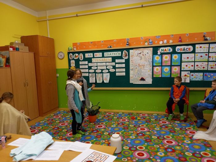 V pátek 8.4. si děti našich třetích tříd užily ve škole Noc s Andersenem. Nocí a večerem děti provázela krásná čtenářská lekce věnovaná Janu Amosi Komenskému. Díky připravenému textu se děti seznámily s dětstvím a životem Jana Amose Komenského. Krátké úryvky textu byly vždy doprovázeny zábavnými aktivitami, které dětem přiblížily životní cestu malého Jana. Děti dokázaly odhalit, jaké výročí narození slavného učitele národů v letošním roce slavíme a seznámily se s heslem, které kdysi malému Janu Amosi Komenskému řekl jeho učitel: "Neštěstí zlomí jen slabochy. Silné naopak posílí." Vyzkoušely si, jak obtížné je být poutníkem a překonávat nesnadné cesty života. Pomocí dramatizace se vcítily do malého Jana, který toužil po rozhovorech se svým tatínkem. Hledaly odpovědi na zásadní životní otázky, bojovaly za léky proti moru a na stezce odvahy objevovaly záhadné slovo. Odměnou za odvahu a splnění všech výzev byl dětem nejen poklad, který objevily, ale také pěkný pocit z krásného večera.