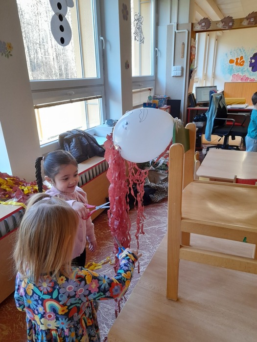 Během února se děti ze třídy Ježků věnovaly zajímavým tématům – poznávaly různá povolání, objevovaly lidské tělo a zkoumaly své smysly. Děti se seznámily s různými profesemi, co práce obnáší, a sama si některá povolání vyzkoušela v tematických hrách. Naučily se rozpoznávat pracovní pomůcky a přiřazovat je ke správným profesím. Při poznávání lidského těla si osvojily názvy základních částí těla, jejich funkci a důležitost pro každodenní život. Se zaujetím objevovaly, jak pracuje srdce, k čemu slouží plíce nebo proč máme kosti. Téma smyslů přineslo mnoho zábavných pokusů – děti si vyzkoušely hmatem rozeznávat předměty, poslouchaly různé zvuky, poznávaly vůně a chuť. Díky tomu si děti všimly, jak důležité jsou naše smysly a jak nám pomáhají v běžném životě. Únor byl plný nových poznatků, zajímavých aktivit a radostného objevování světa kolem nás.