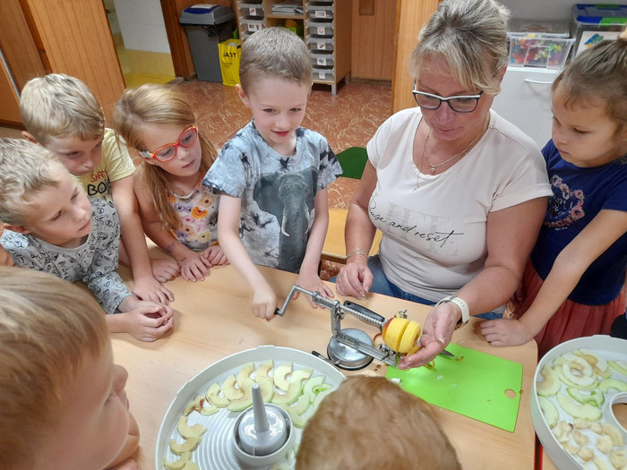 Školní rok jsme zahájili návštěvou mezinárodní výstavy drobného zvířectva v Třinci. Chodili jsme na prolézačky k městské knihovně, hráli si na školní zahradě a chodili na procházky do lesoparku. Oslavili jsme narozeniny našeho kamaráda Adámka. Během jednoho týdne jsme sušili, krájeli, mixovali a ochutnávali různé druhy ovoce.