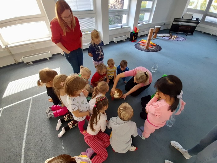 s jablíčky a skořicí, které jim moooc chutnaly. Navštívilo nás také divadélko s příběhem o vlkovi a