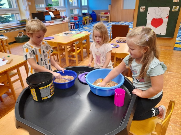 „Ptáte se mě co je září? Přece měsíc v kalendáři. Už devátý v pořadí. Začne podzim, nevadí!“ V měsíci září jsme se seznamovali s novými kamarády. Povídali jsme si o rodině a ochutnávali zeleninu. Navštívilo nás divadlo s pohádkou O červené Karkulce. Sluníčko nás ještě pořád hřálo a užívali jsme si procházky do lesoparku a na hřiště.
