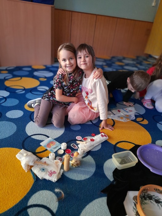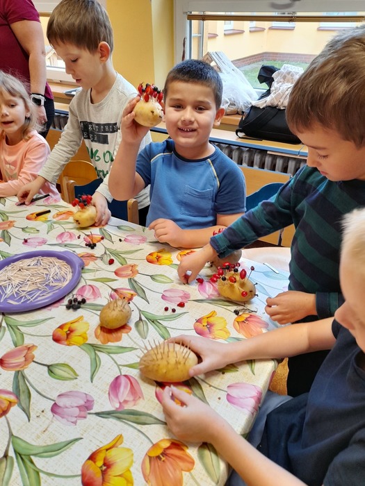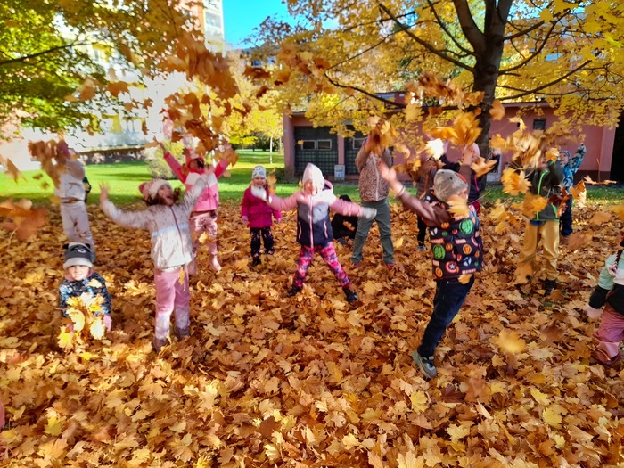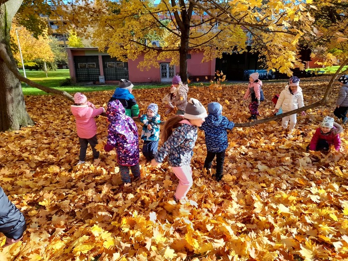 Měsíc říjen byl v naší školce plný podzimních barev, her a objevování. Povídali jsme si o proměnách přírody, pozorovali jsme jak se stromy barví a užívali si podzimní radovánky v listí. Děti sbíraly kaštany, žaludy, i barevné listy, ze kterých jsme pak tvořili krásné podzimní obrázky a dekorace. Učili jsme se o ovoci a zelenině a jak je důležité jíst zdravě, ochutnávali jsme různé druhy zeleniny a ovoce poslepu, poznávaly je všemi smysly. Společně jsme také trénovaly básničky a písničky s podzimní tématikou.Děti se také seznámily s houbami. V říjnu jsme si také užili podzimní dílničky s rodiči a těšíme co nám přinese listopad.